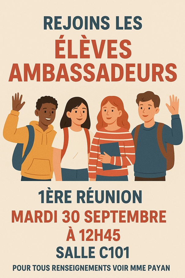 Réunion des élèves ambassadeurs pHARe (lutte contre le harcèlement) - Mardi 30 septembre 2025 à 12h45 - Salle C101